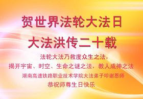 湖南高速铁路职业技术学院大法弟子贺世界法轮大法日暨大法洪传二十载!恭祝师尊生日快乐!
